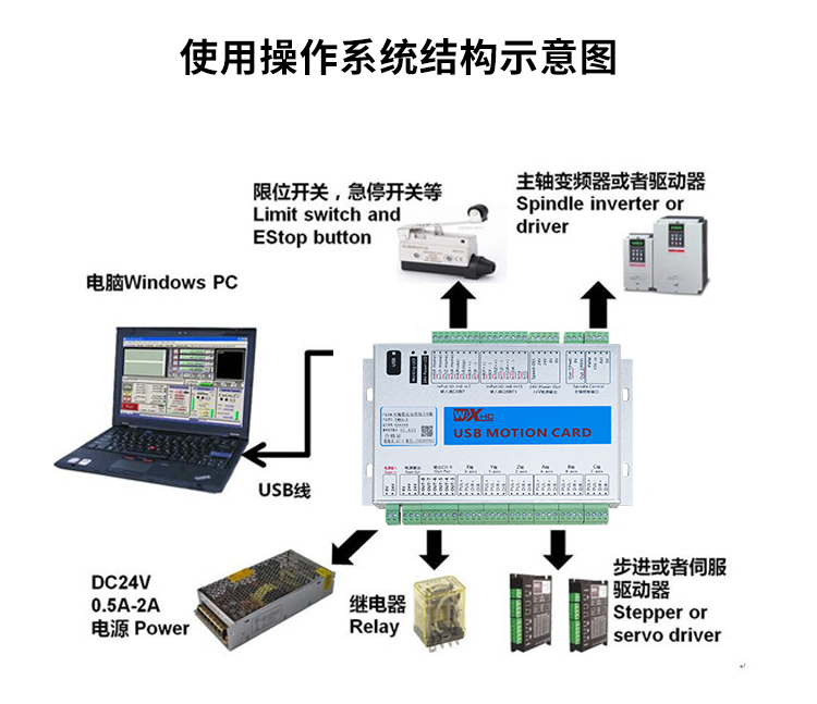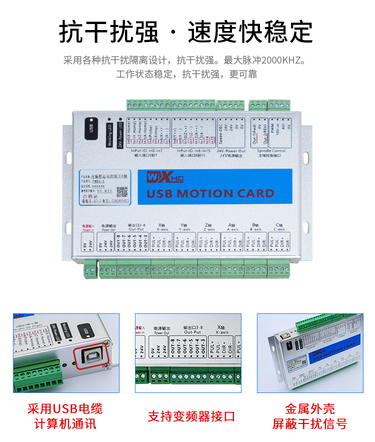 9.控制卡支持軟限位,硬限位,原點(diǎn)開關(guān),支持對(duì)刀信號(hào),急停信號(hào)控制。